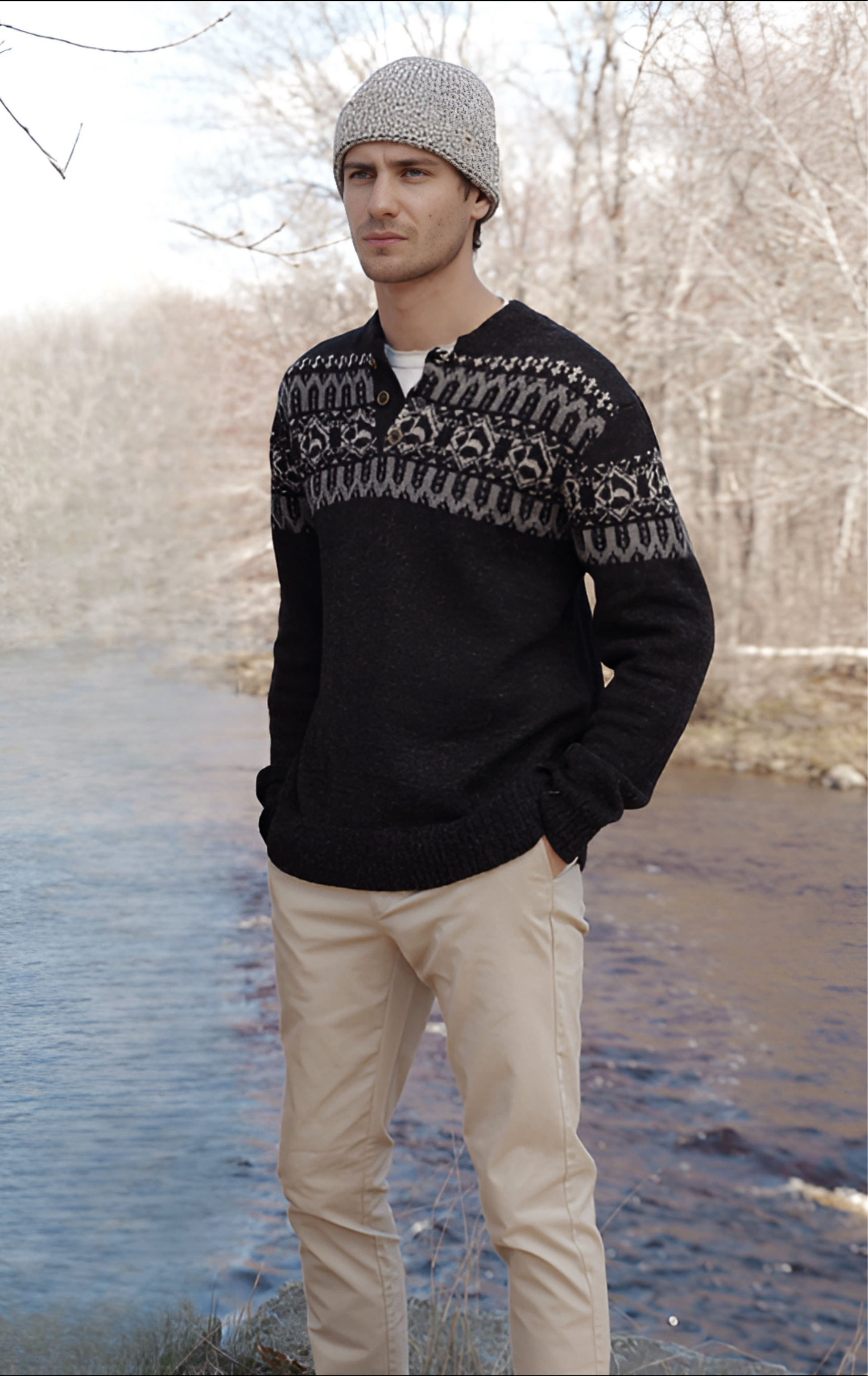 Elevate your wardrobe with our luxurious Alpaca Print Sweater. Made from 100% Alpaca, this sweater features three buttons at the neck and a subtle knit across the chest. Indulge in the softness and sophistication of Alpaca, the perfect addition to your elegant style.