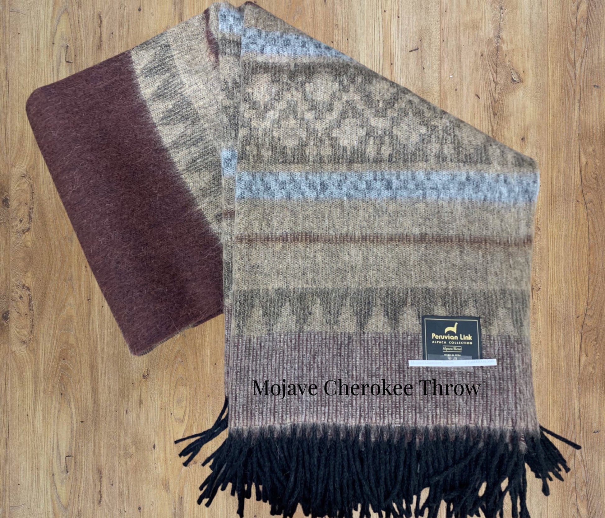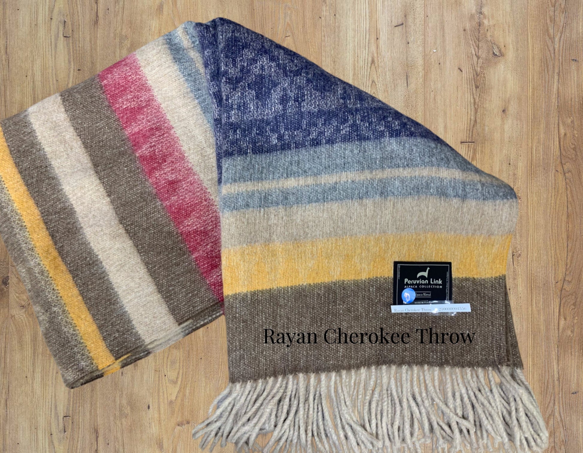 Indulge in the cozy comfort of our Cherokee Throw. Made with a luxurious Alpaca blend, it features a unique design inspired by the rich culture of the Cherokee people. Perfect for adding warmth and style to any room, this throw offers both comfort and cultural charm. Choose from an assortment of colorways.