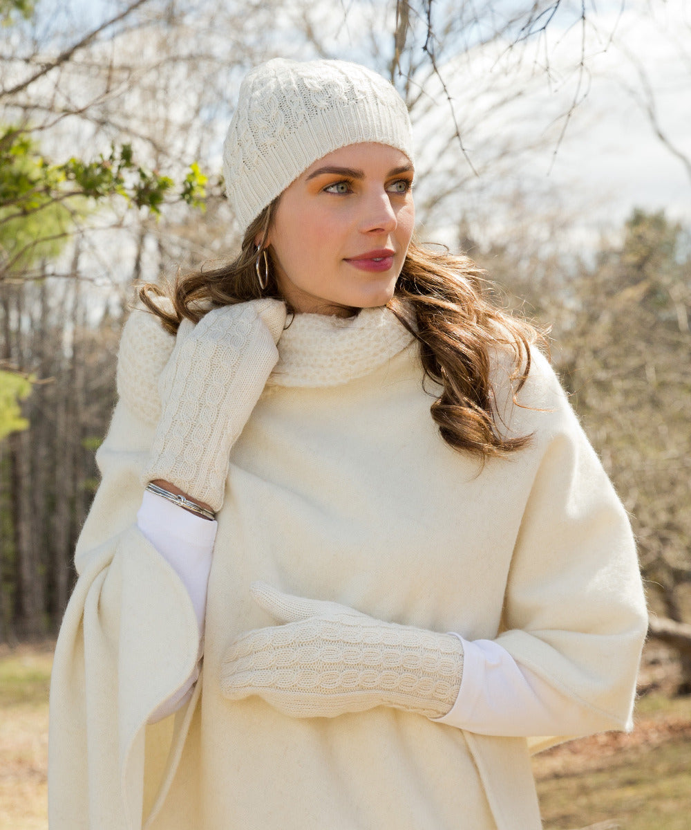 Complete your ensemble with the matching French Braid Mittens for a head-turning, coordinated look. Don’t be cold, be chic!