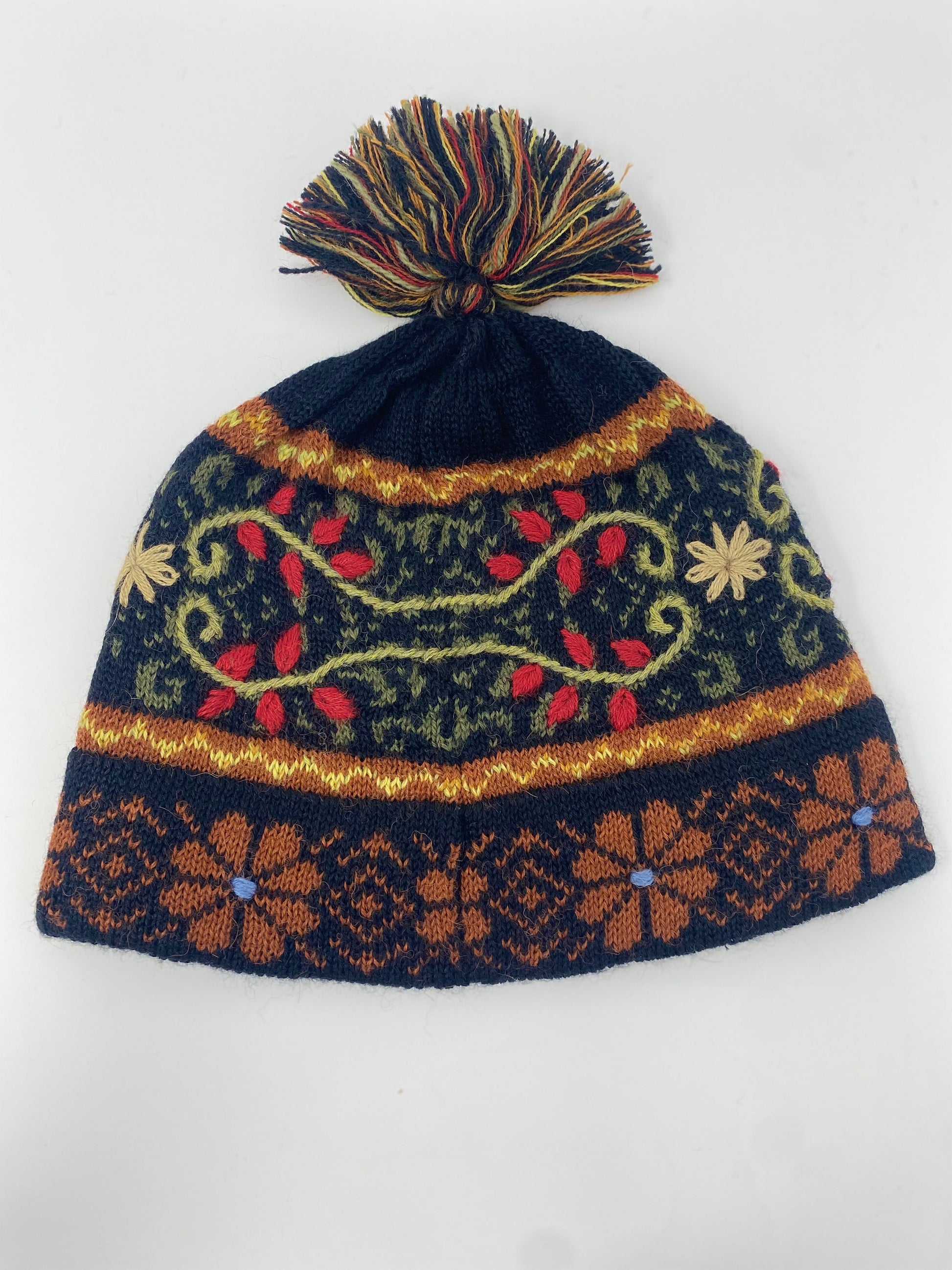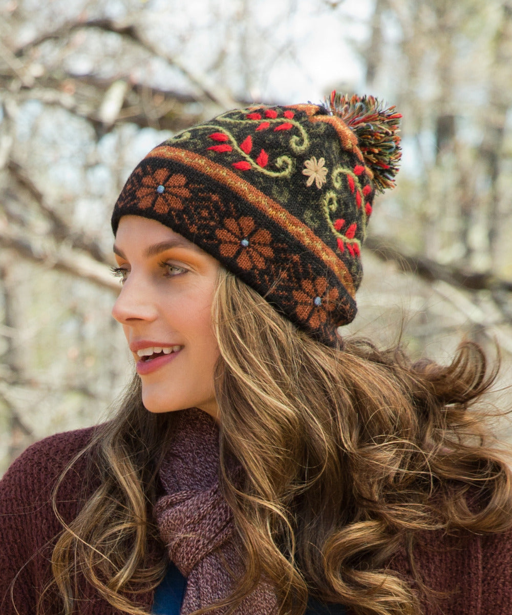 Introducing the Mariana Alpaca Cap – a masterpiece of craftsmanship and style. Handcrafted by skilled artisans in Peru, this exquisite hat is symbolic of the artistry of Peru. The vibrant colors and captivating fern pattern make it a true statement piece. Complete with a multicolor tonal pom-pom, this hat is as playful as it is sophisticated.