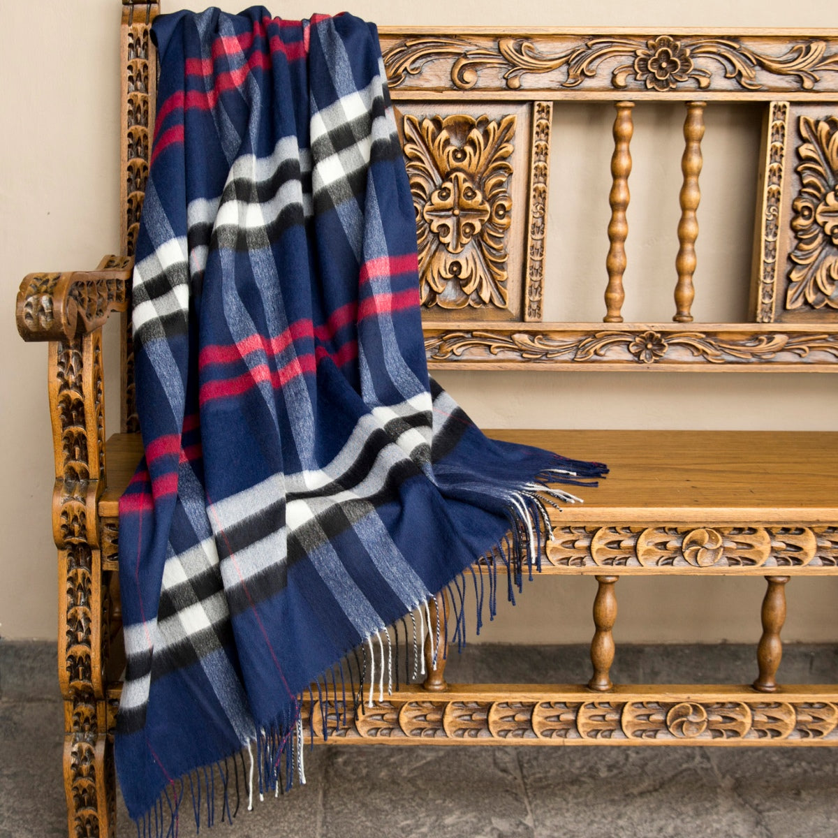 With a nod to Scottish mariners in mind, the Nautical Baby Alpaca Throw is designed in deep blue tones, adorned with striking accents of red, white and black. Its classic style and charm add a sense of cozy tradition to any home, all year round.
