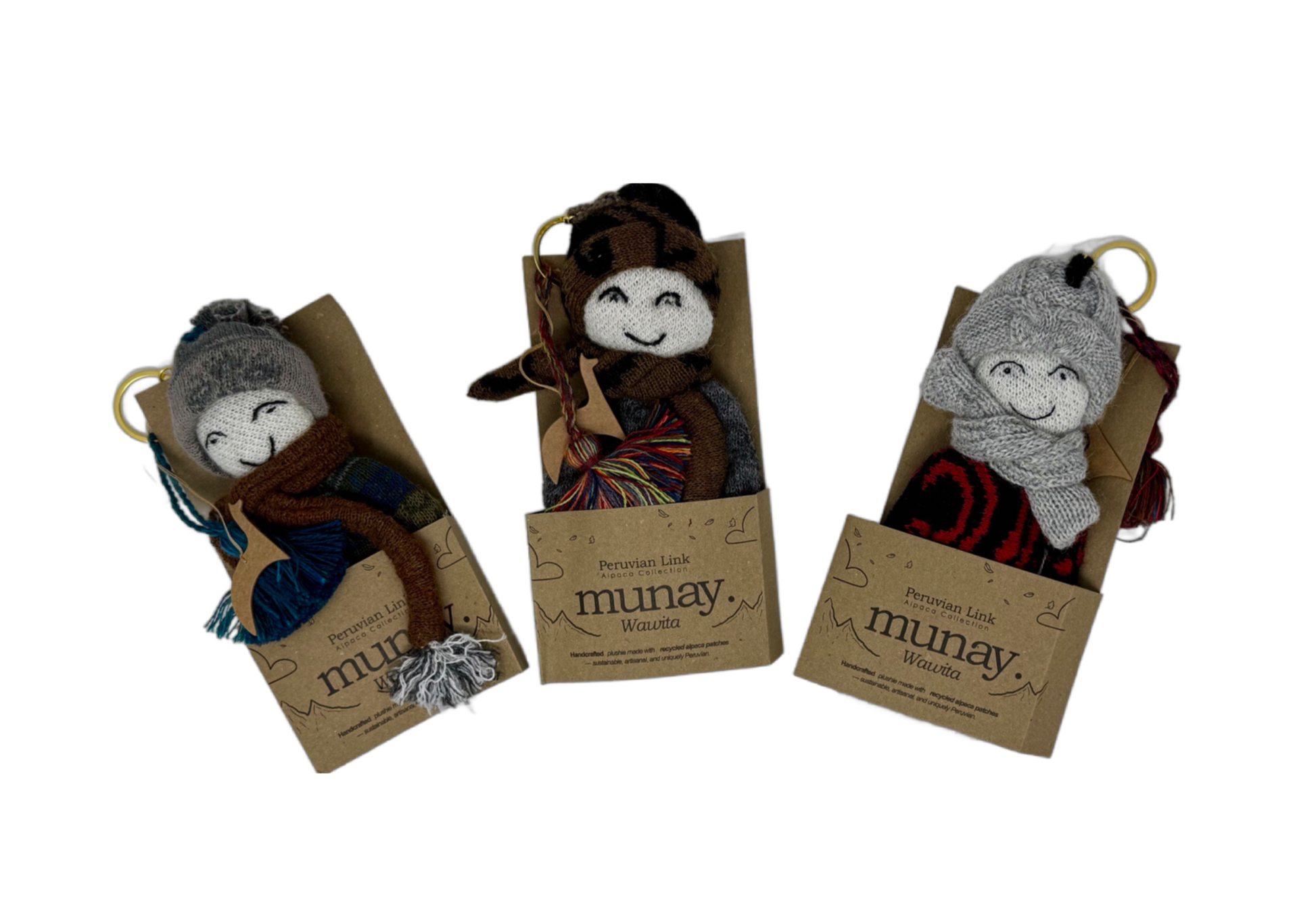 Munay Wawita is a lovingly handcrafted keepsake doll, created from carefully selected scrap leftovers. Meaning "beloved little one," this unique doll carries a special warmth and charm, making it a heartfelt gift or a treasured memento. Perfect for those who appreciate meaningful, sustainable craftsmanship.