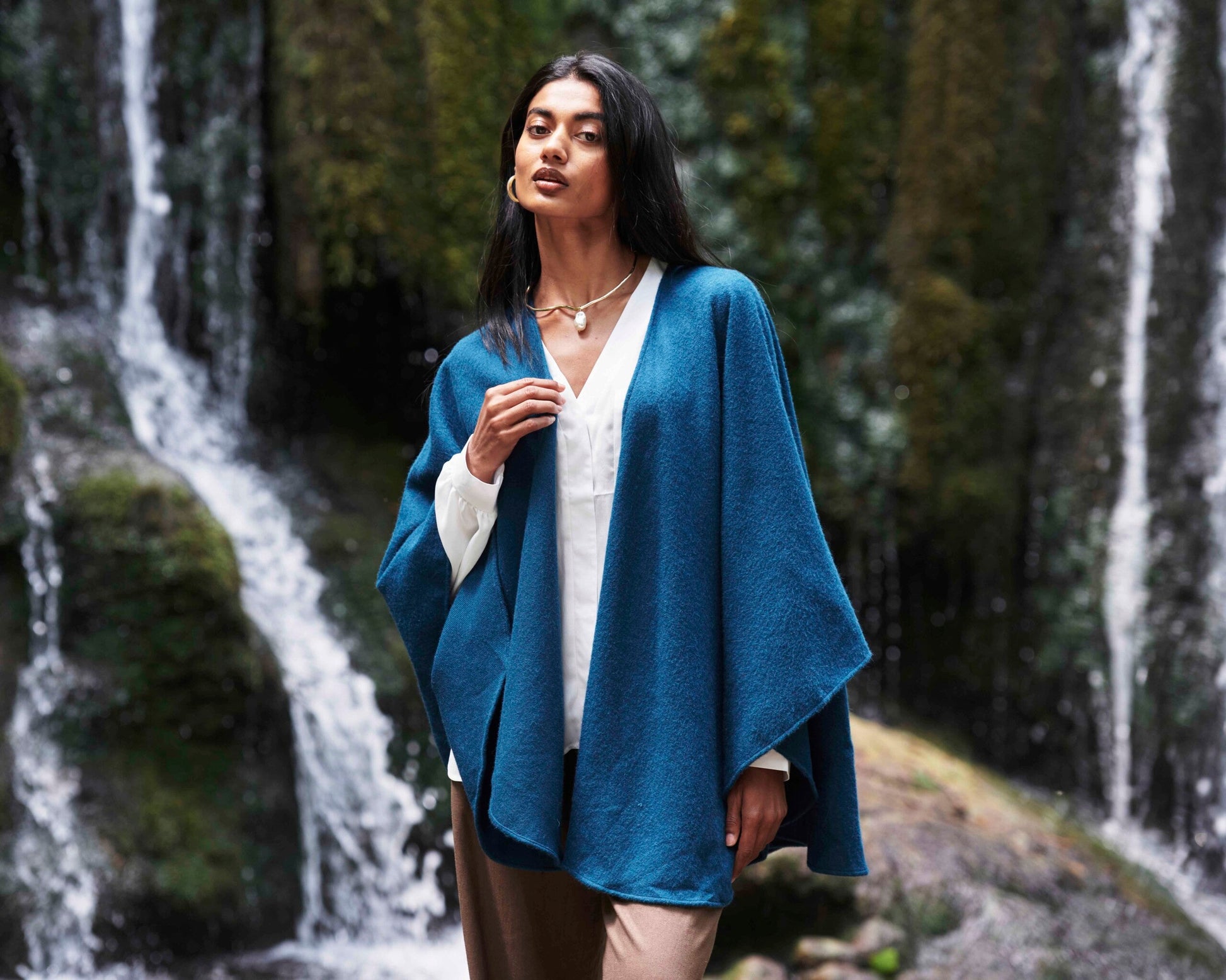 Our classic Baby Alpaca Ruana is made from 100% ultra soft, premium Baby Alpaca. This timeless staple offers luxurious comfort and style in every color. Versatile, easily styled, simply throw it over a light layer for a fashionable summer ensemble or stay warm in the winter and wrap yourself with this Ruana as a final layer. Perfect for travel!