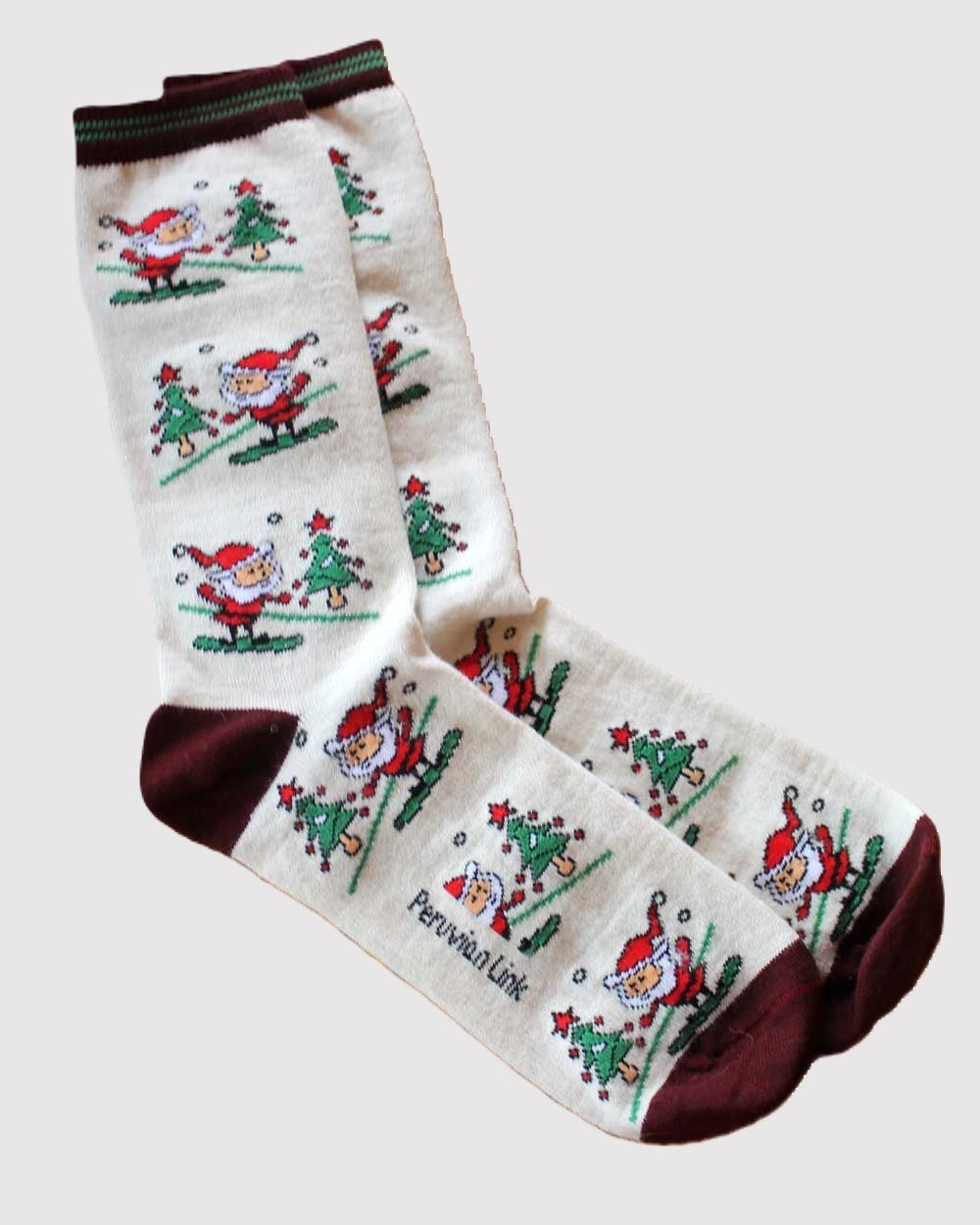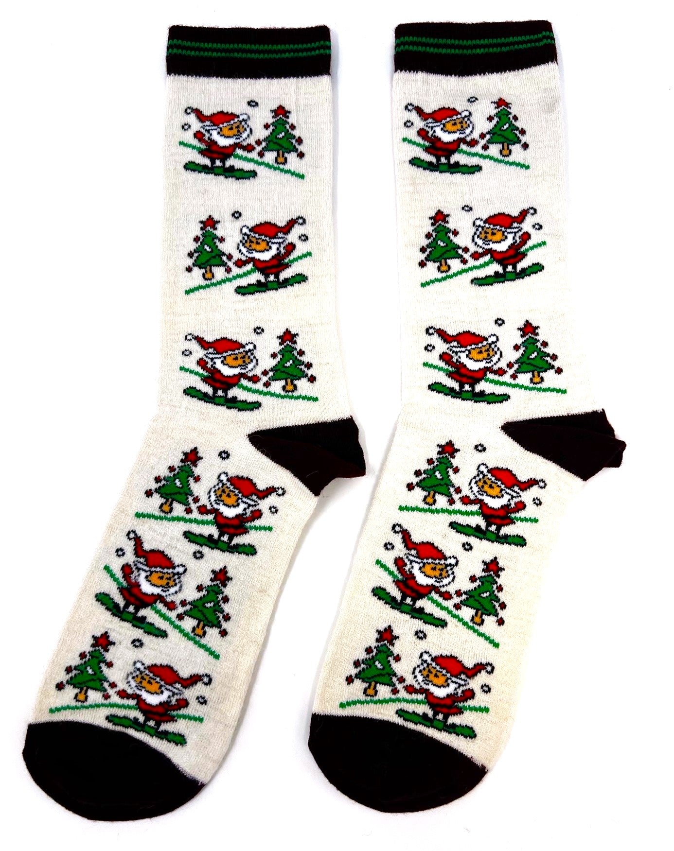 Christmas Print Alpaca Crew Sock Santa with Snowboard