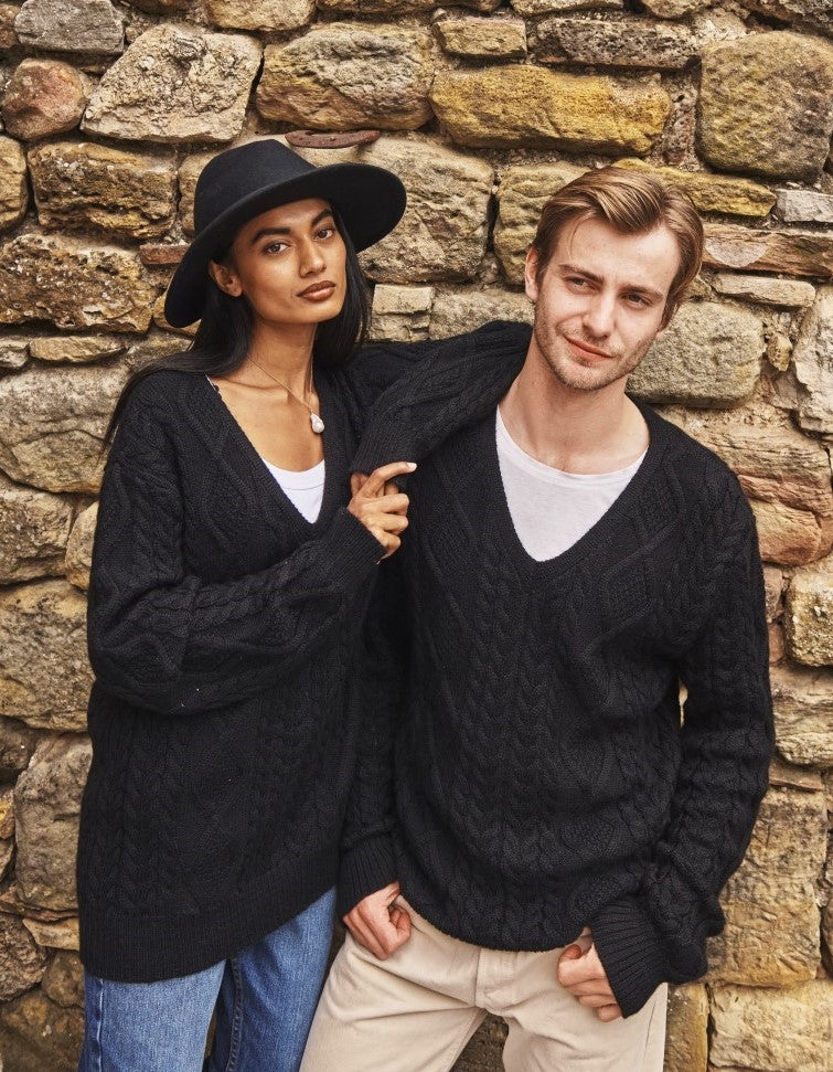 Indulge in elegance and comfort with our Manhattan V-Neck Sweater. Crafted from 100% Super Fine Alpaca, this luxurious piece is the epitome of class. The classic cable knit pattern adds a touch of Manhattan sophistication to any outfit, making it perfect for both casual and formal occasions. Features a loose and relaxed fit with ribbed cuffs and hem.