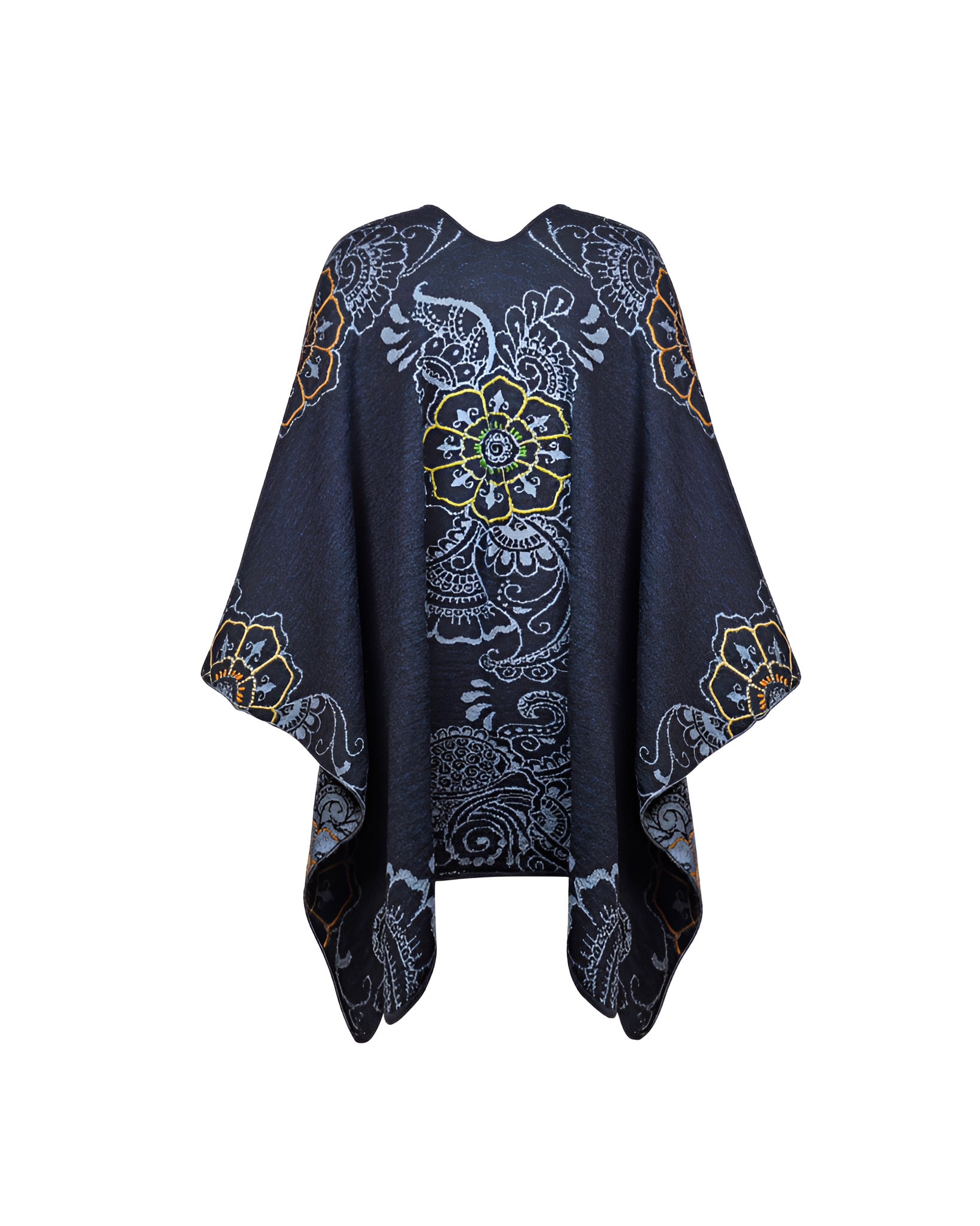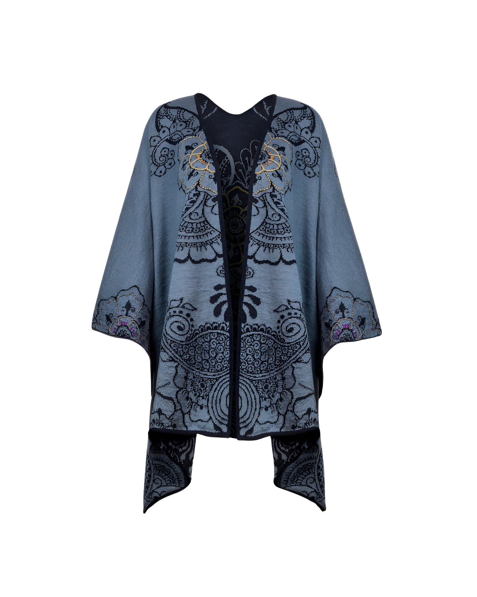Elevate your style with our Ibiza Reversible Ruana. Crafted with luxurious alpaca and adorned with hand-embroidered designs, this ruana offers sumptuous blue tones for a timeless and sophisticated look. Perfect for any occasion, experience the ultimate in elegance and comfort.