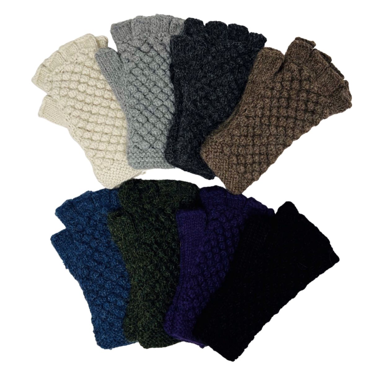 Our Textured Fingerless Gloves are hand-knit from 100% Alpaca with a splendid popcorn-knit texture. Effortlessly stylish these fingerless gloves pair with any outfit choice while bringing handmade charm.