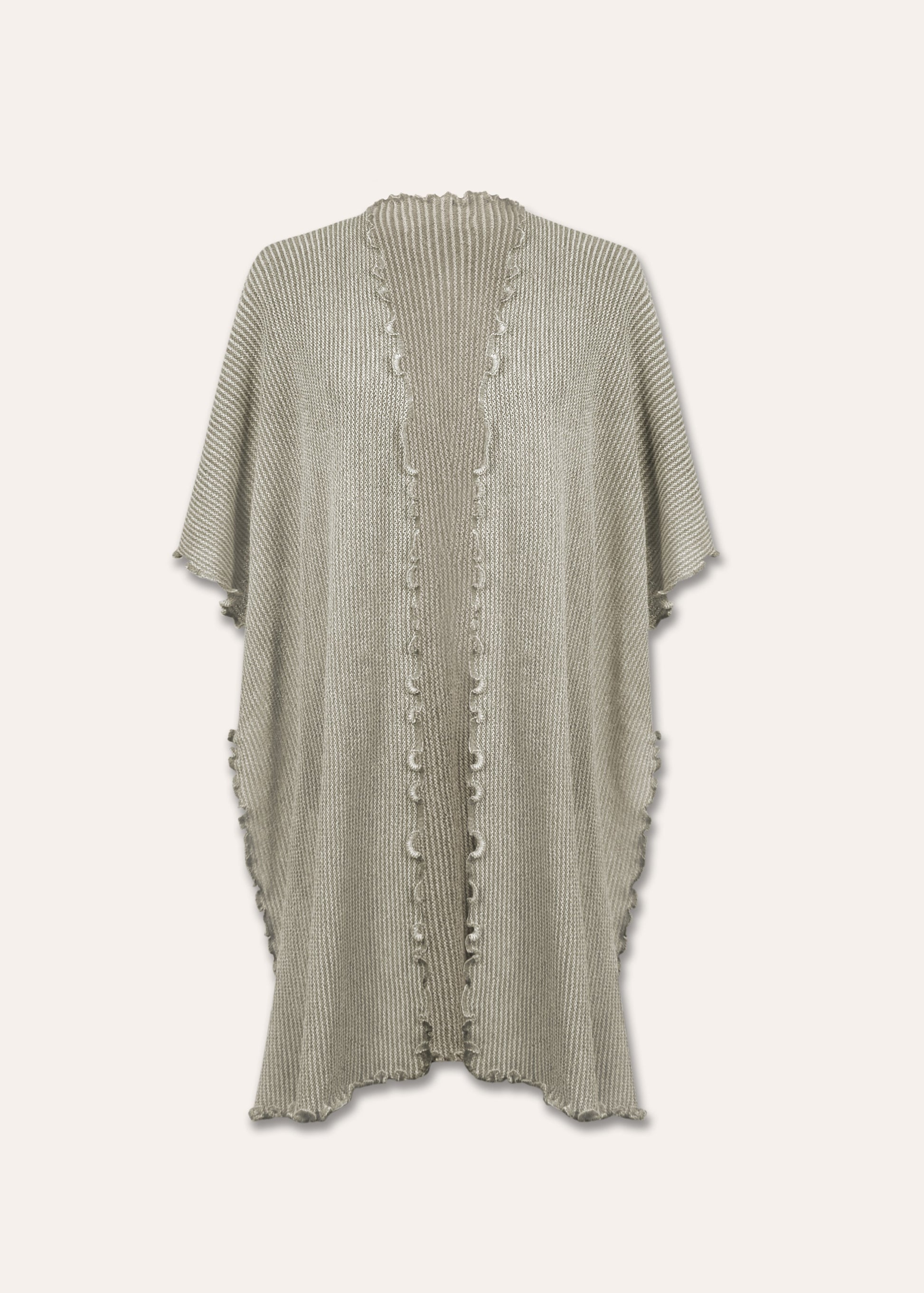 Wrap yourself in elegance and make a fashion statement with our Ruffle Striped Baby Alpaca Shawl. This timeless piece showcases sand and white stripes, exuding sophistication and style. The delicate ruffle edging adds a touch of femininity, making it the perfect accessory for any occasion.