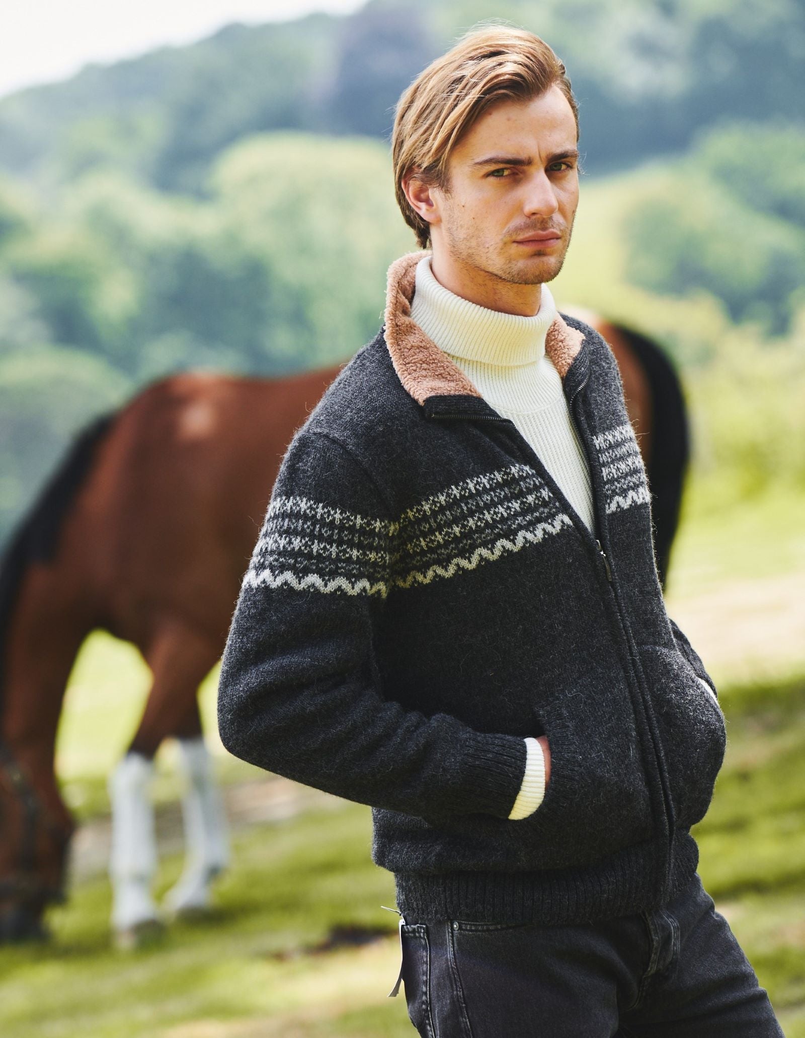 Embrace the perfect blend of comfort and style with our Fleece Lined Alpaca Sweater. Crafted with utmost care, this 100% Alpaca zip-up sweater is designed to keep you cozy and looking fabulous all day long. From chilly winter walks to cozy nights by the fireplace, indulge in the warmth and elegance that only our sweater can provide.