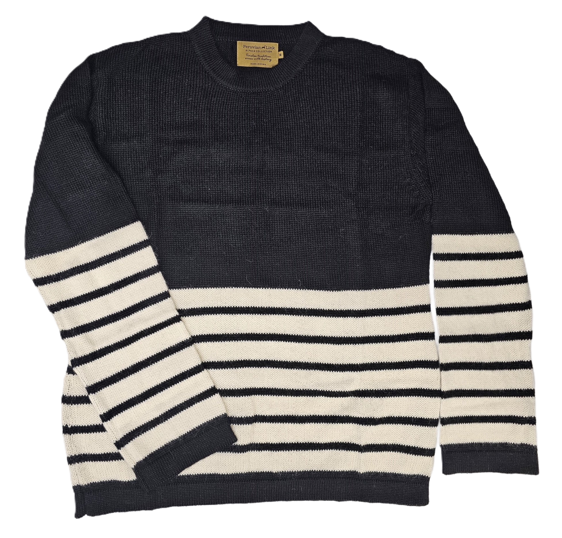 The Hudson sweater combines timeless style with exceptional comfort, crafted from 100% alpaca fiber for superior softness and warmth. Its sophisticated black and white color blocking offers a modern, versatile look ideal for layering or standalone wear. Boasting a relaxed fit, it is designed for durability and breathability, this elegant piece delivers enduring luxury perfect for both casual and refined settings.