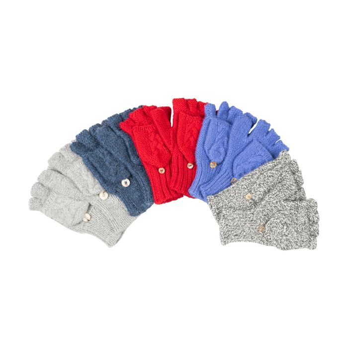 Cable Knit Alpaca Glittens are hand made in Peru of 100% Alpaca Fiber. Beautiful and versatile, they can be worn as a fingerless glove or as a mitten. Sure to keep hands warm either way. They coordinate perfectly with our Cable Knit scarves and hats.