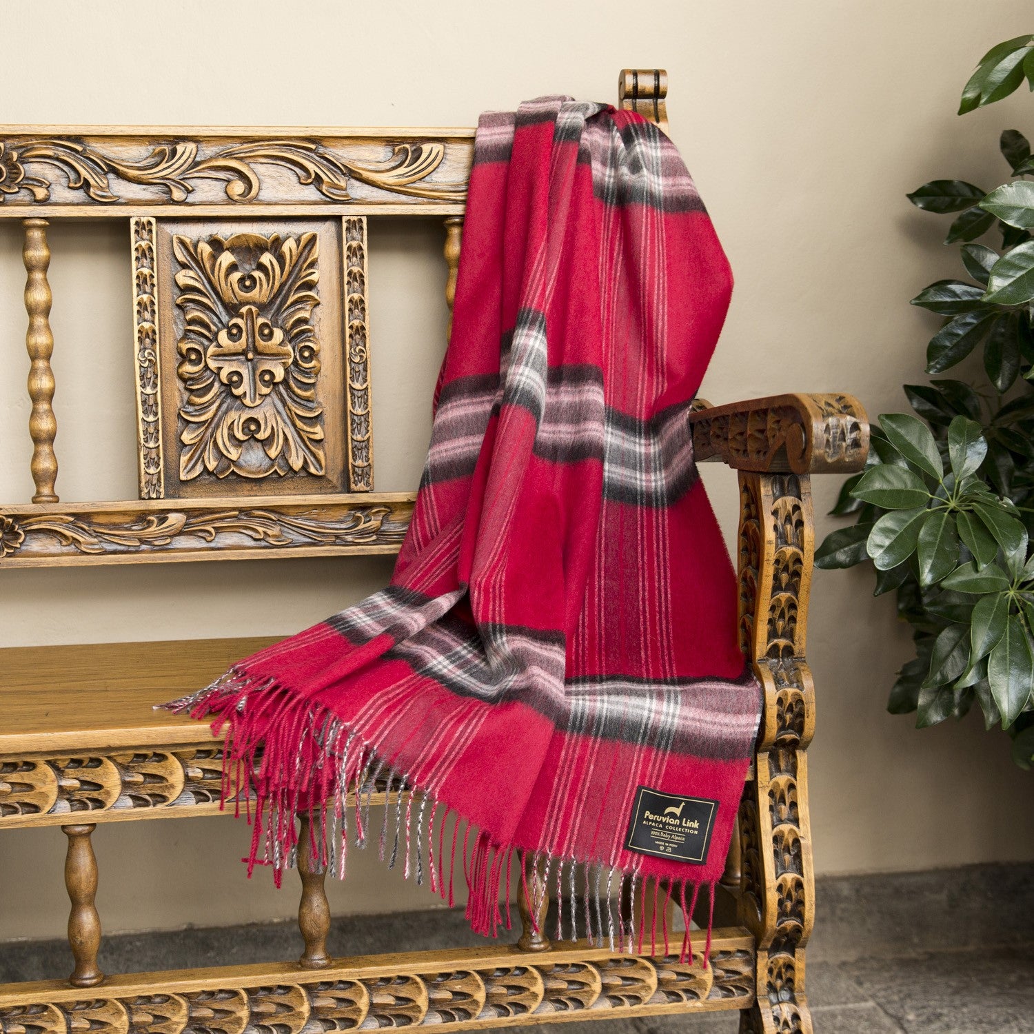 Crafted with utmost precision, the Cardinal Baby Alpaca Throw is woven in red tones, adorned with striking accents of black and white. Its Scottish charm is simply irresistible, making it a timeless classic that effortlessly enhances the ambiance of any home, all year round. Wrap yourself in pure opulence and indulge in the cozy embrace of this exquisite throw.