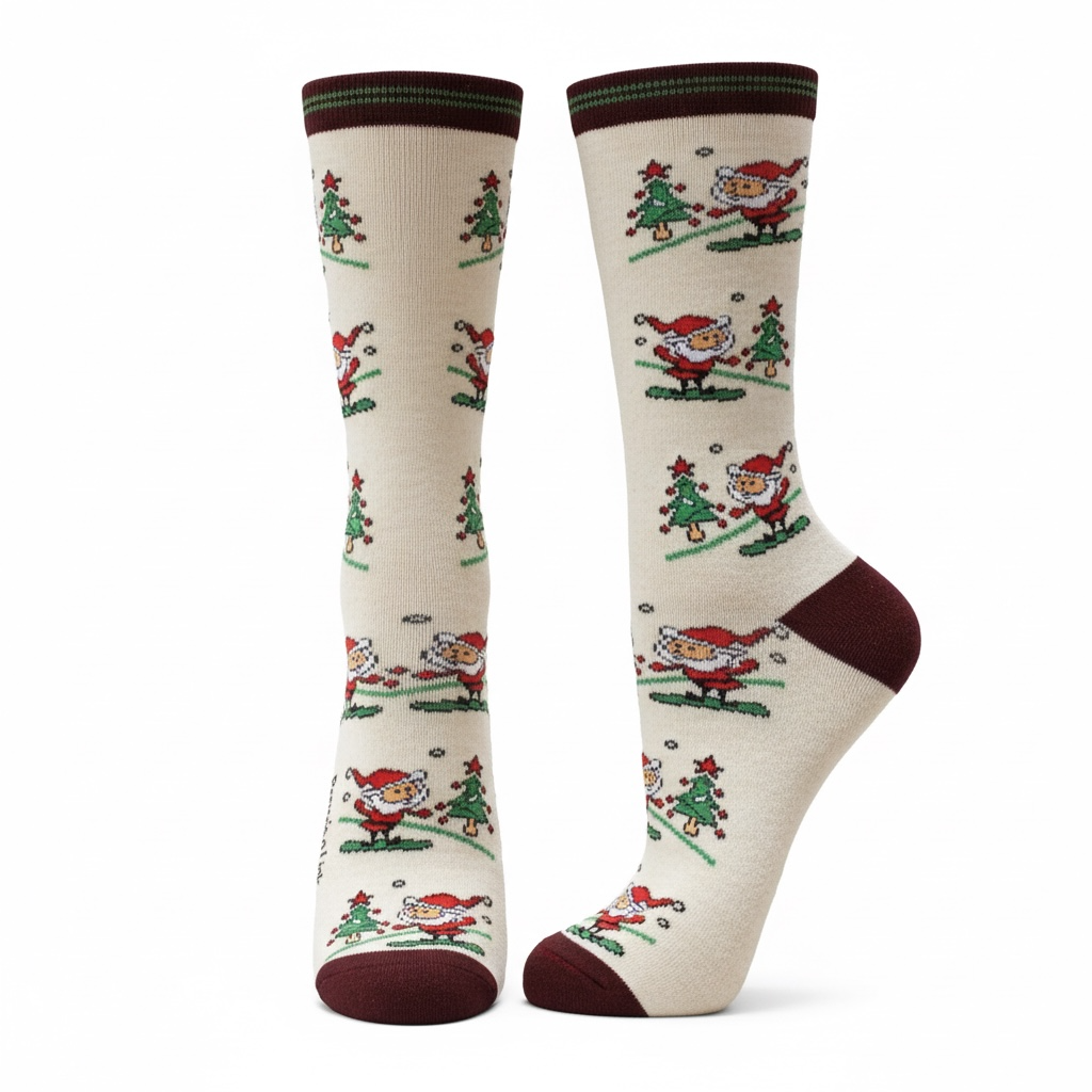 Christmas Print Alpaca Crew Sock Santa with Snowboard