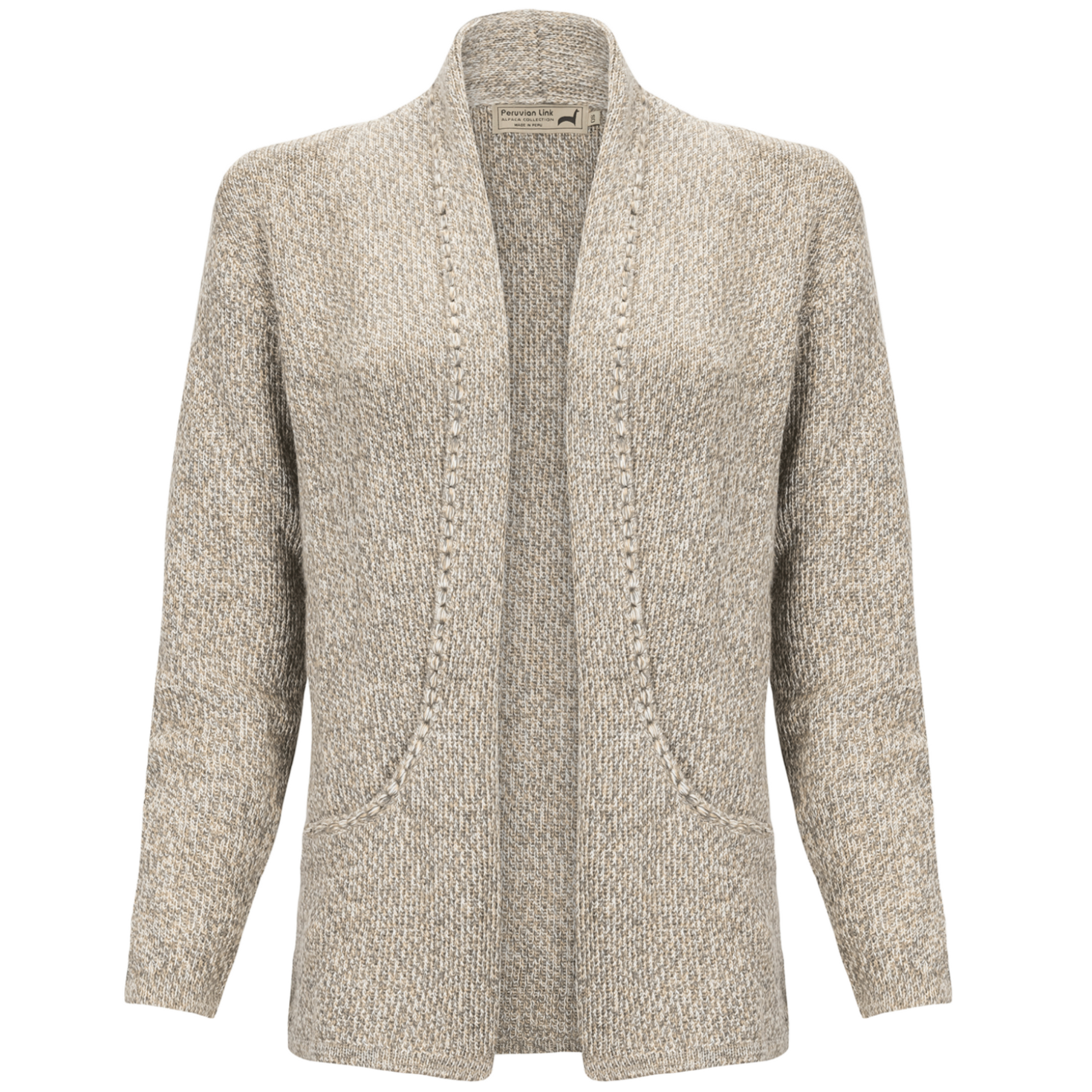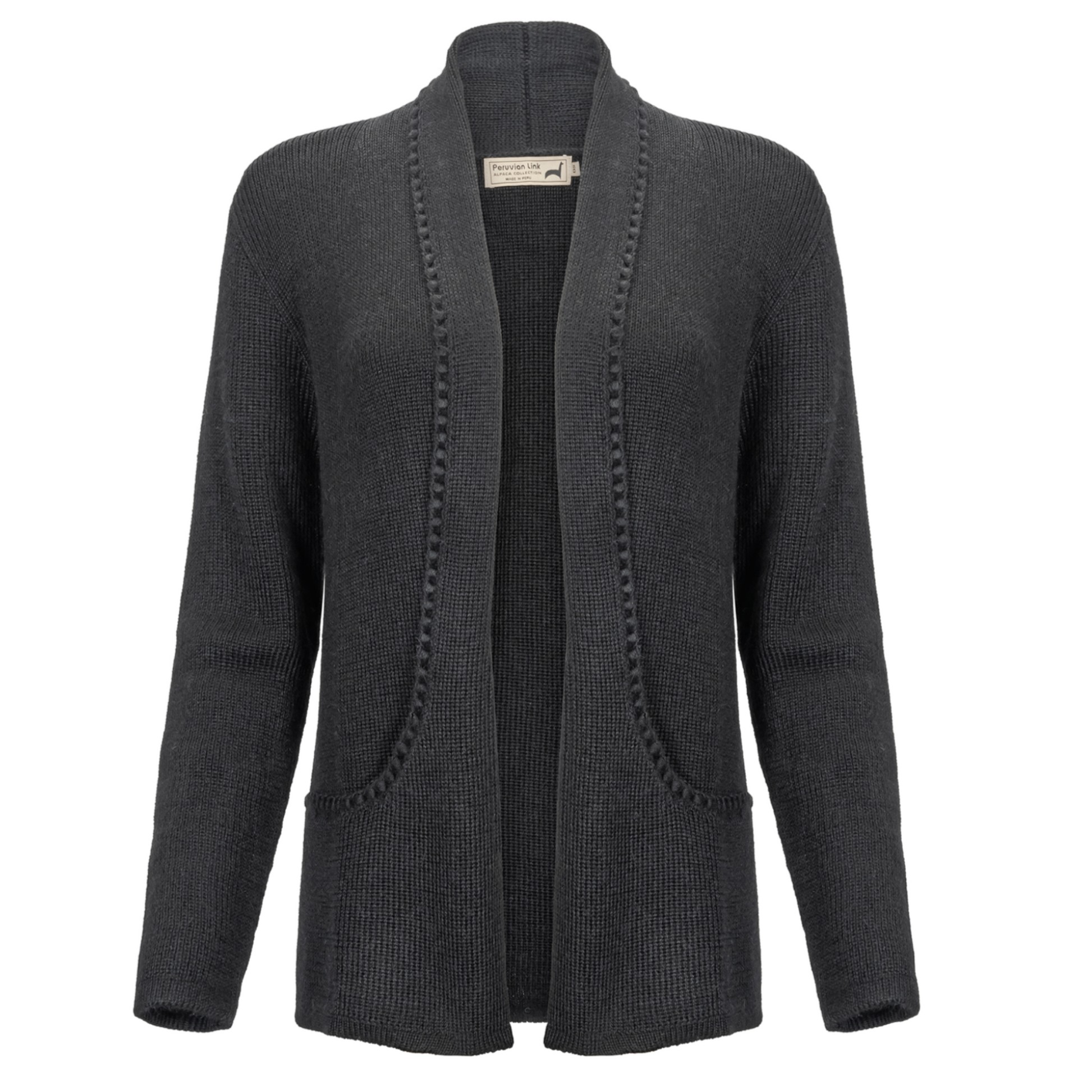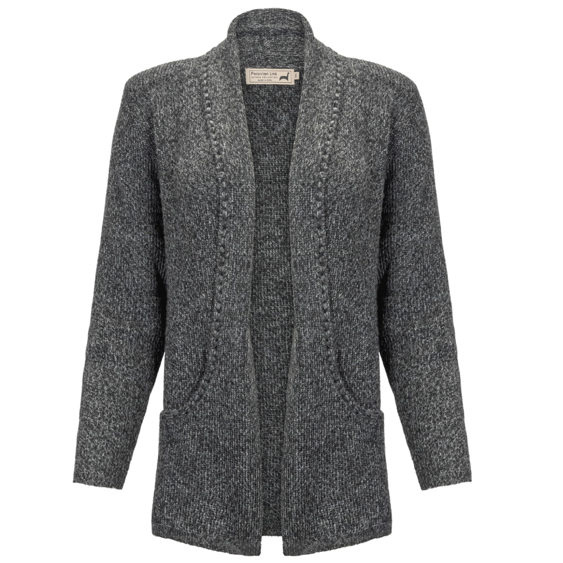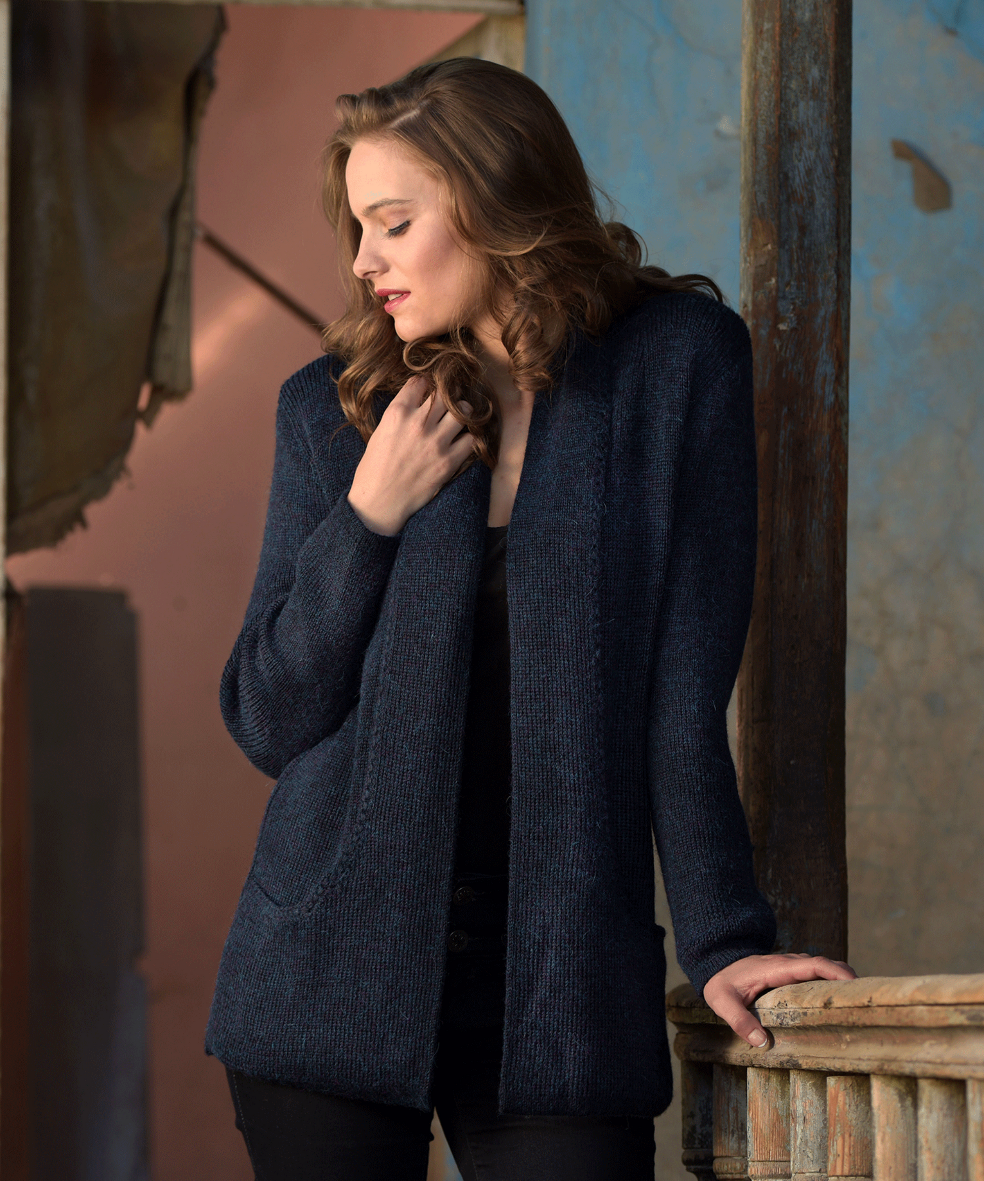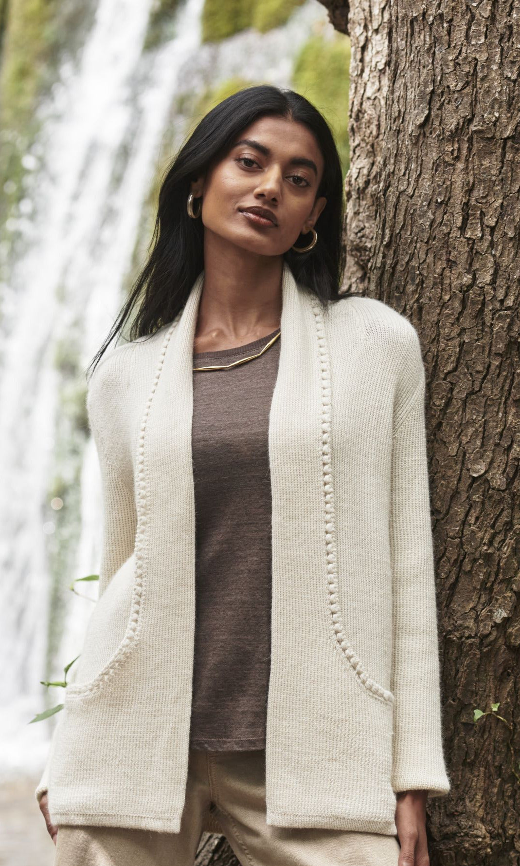 Our iconic Alpaca Fireside Sweater is justly named. Perfect for sitting fireside on a cozy day inside or exploring new territories. The wide shawl collar with braided trim transitions into deep scoop pockets at the waist, while small shoulder pads help retain shape even when pockets are filled. Form meets function, in a very stylish way. Available in One Size Fits Most and XL