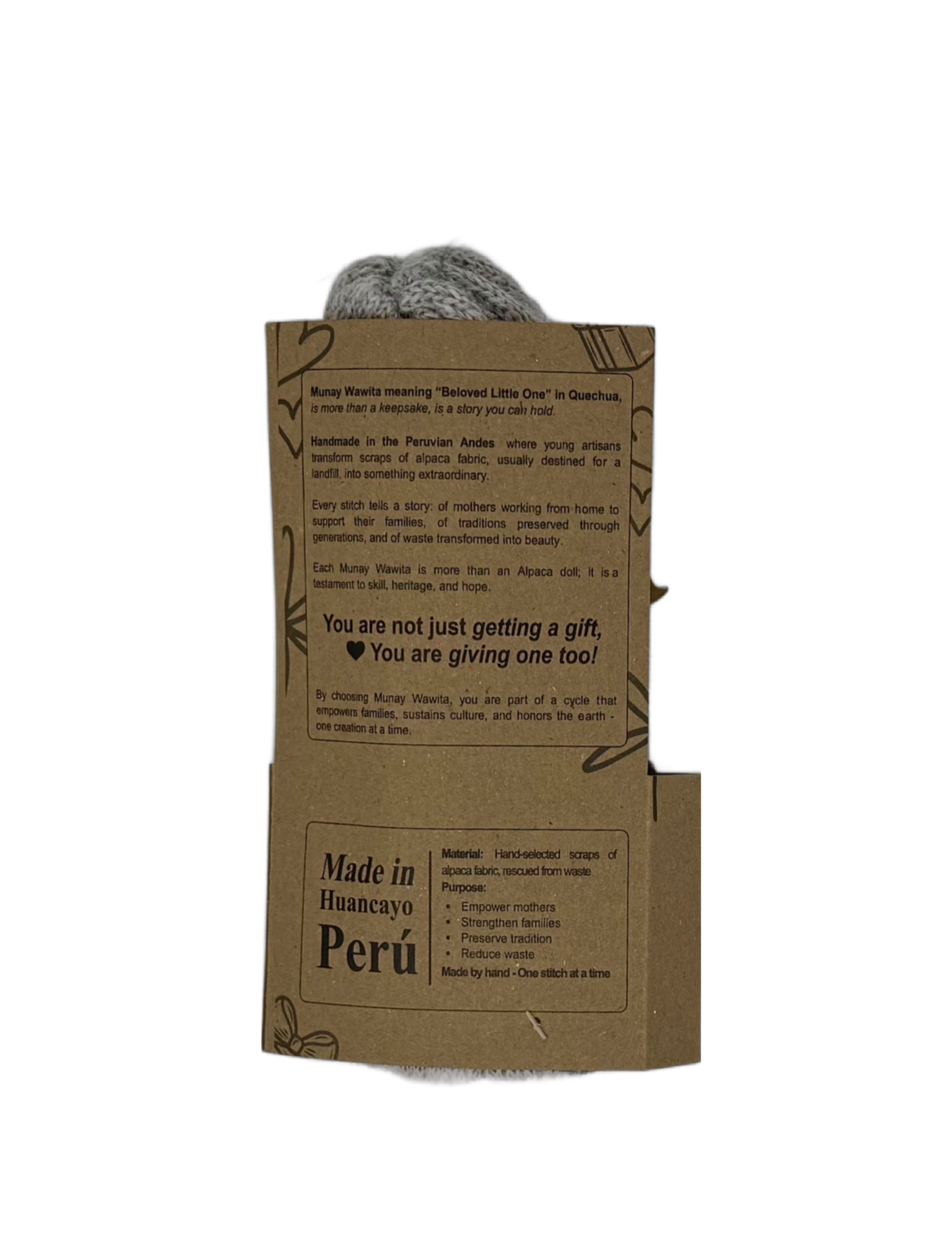 Munay Wawita is a lovingly handcrafted keepsake doll, created from carefully selected scrap leftovers. Meaning "beloved little one," this unique doll carries a special warmth and charm, making it a heartfelt gift or a treasured memento. Perfect for those who appreciate meaningful, sustainable craftsmanship.